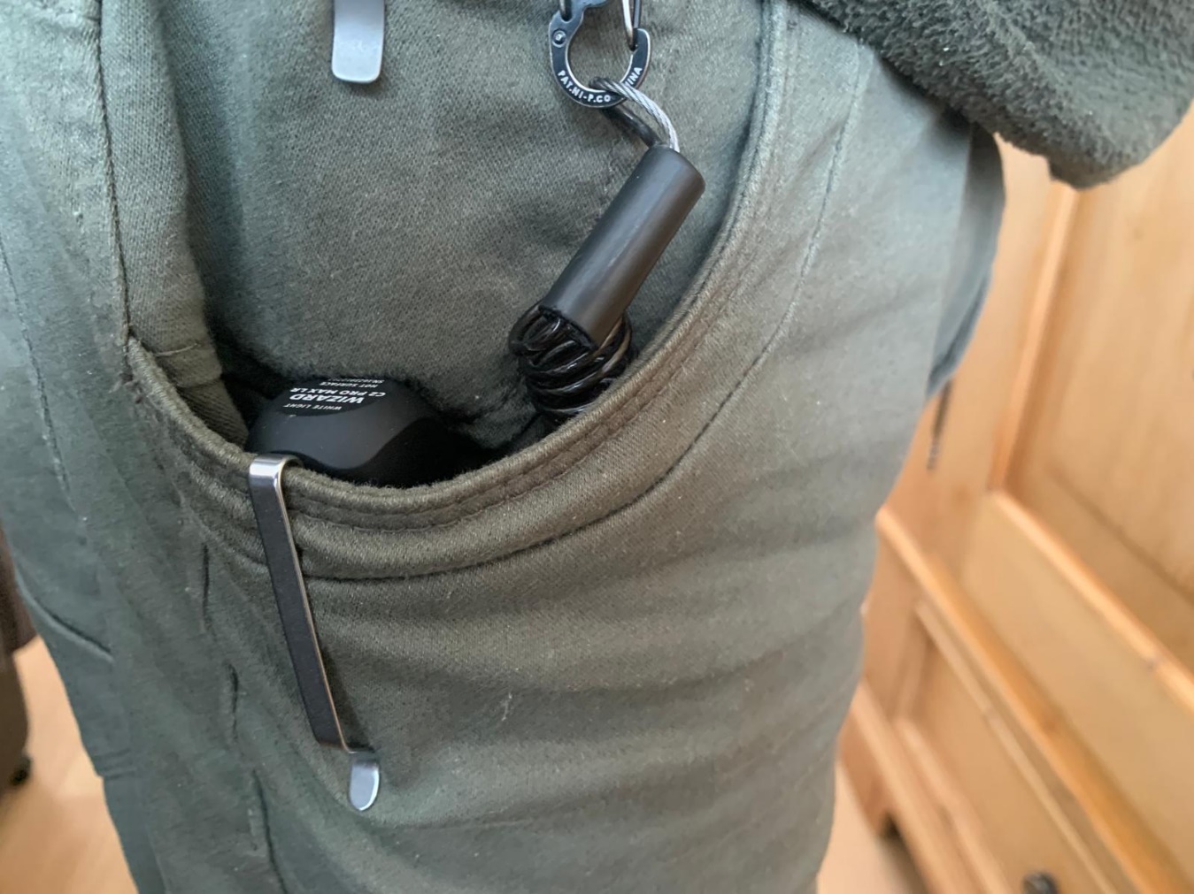 Draagcomfort en klemkracht kledingklip in de normale broekzak: Zeer goed/.