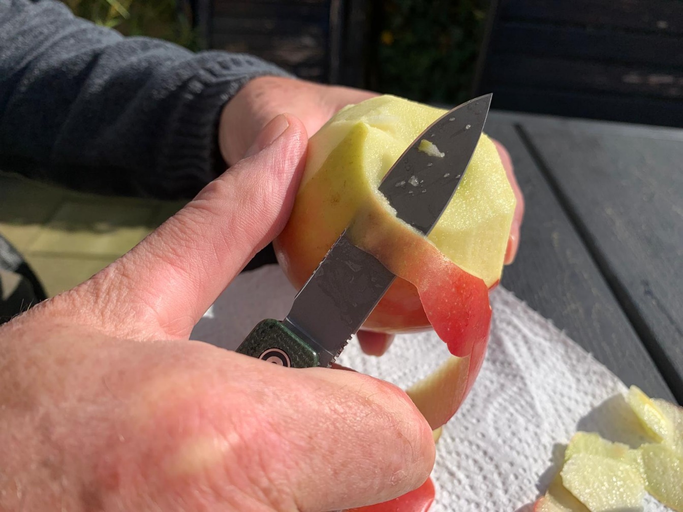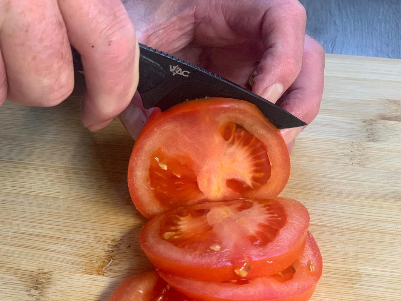 DE E.D.C. KEUKEN SNIJTEST OP TOMATEN: Zeer goed/. Ondanks korte lemmet.