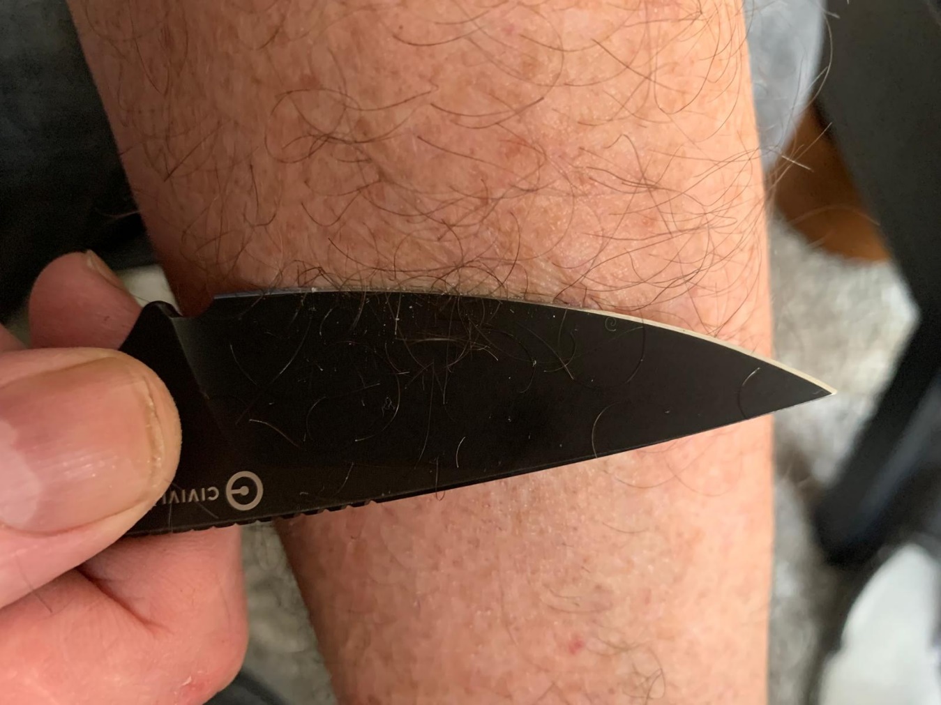 DE SCHERPTETEST OP MIJN OVERGEBLEVEN ONDERARMHAREN: Zeer goed/. Door de zwarte coating zijn de afgeschoren haren echter minder goed zichtbaar.