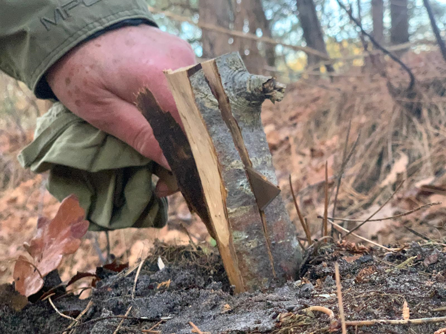 EEN STUKJE BERKENBAST OOGSTEN: Zeer goed/. Alles voor het vuur ontsteken.