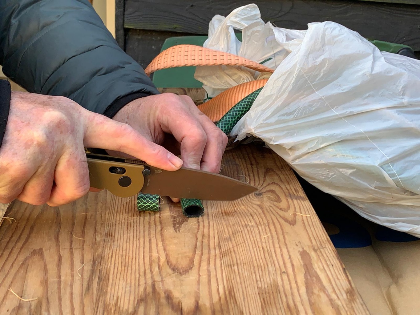 HET DOORSNIJDEN VAN DE HARDE EN TAAIE RUBBEREN TUINSLANG: Zeer goed/.
