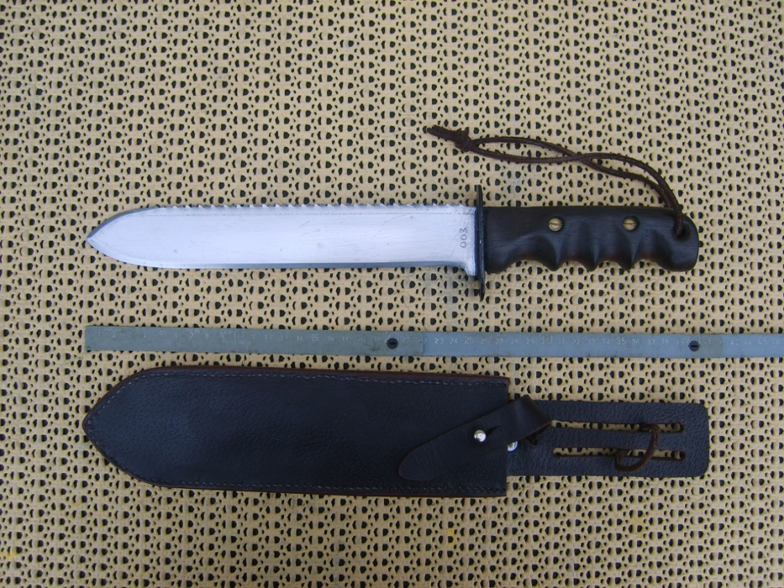 Begonnen met een “snelle krabbel” op een blauw stukje papier kwam na evaluatie en voortschrijdend inzicht het nu oude onderstaande model, ook snel digitaal ter wereld. Met mijn lang geleden handmatig vervaardigde Combat & Survival Smatchet erin.