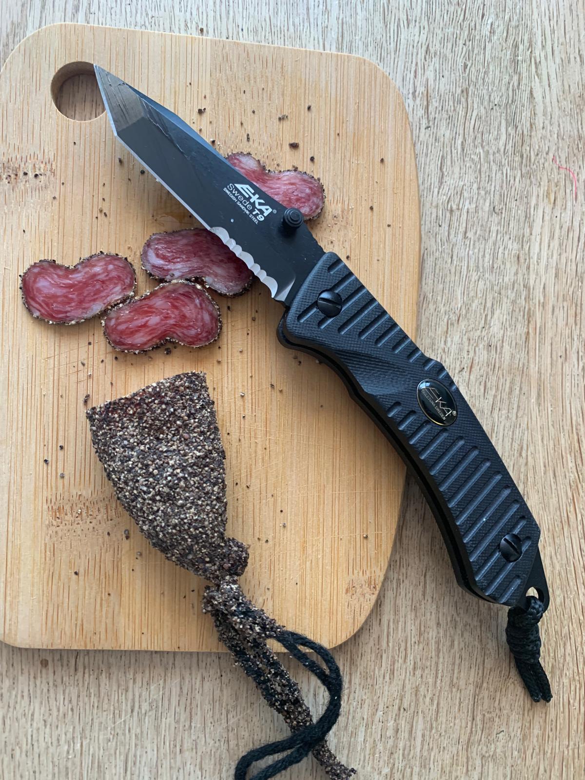 Ik heb vroeger tijdens mijn militaire werk en ook mijn hobby best wat duurdere Tactische American Tanto vouwmessen “van naam en faam” met High-End lemmetstalen, vooral die uit de USA gebruikt, maar mijns inziens doet deze meer betaalbare Tactische EKA Swede T9 Black in het veldgebruik met zijn “sinds jaar en dag” beproefde Zweedse lemmetstaal daar echt niet veel voor onder. Vooral ook dankzij de snel eenhandig te openen zeer scherpe lemmet; de slipvaste handgreep en de stevige lemmet vergrendeling.