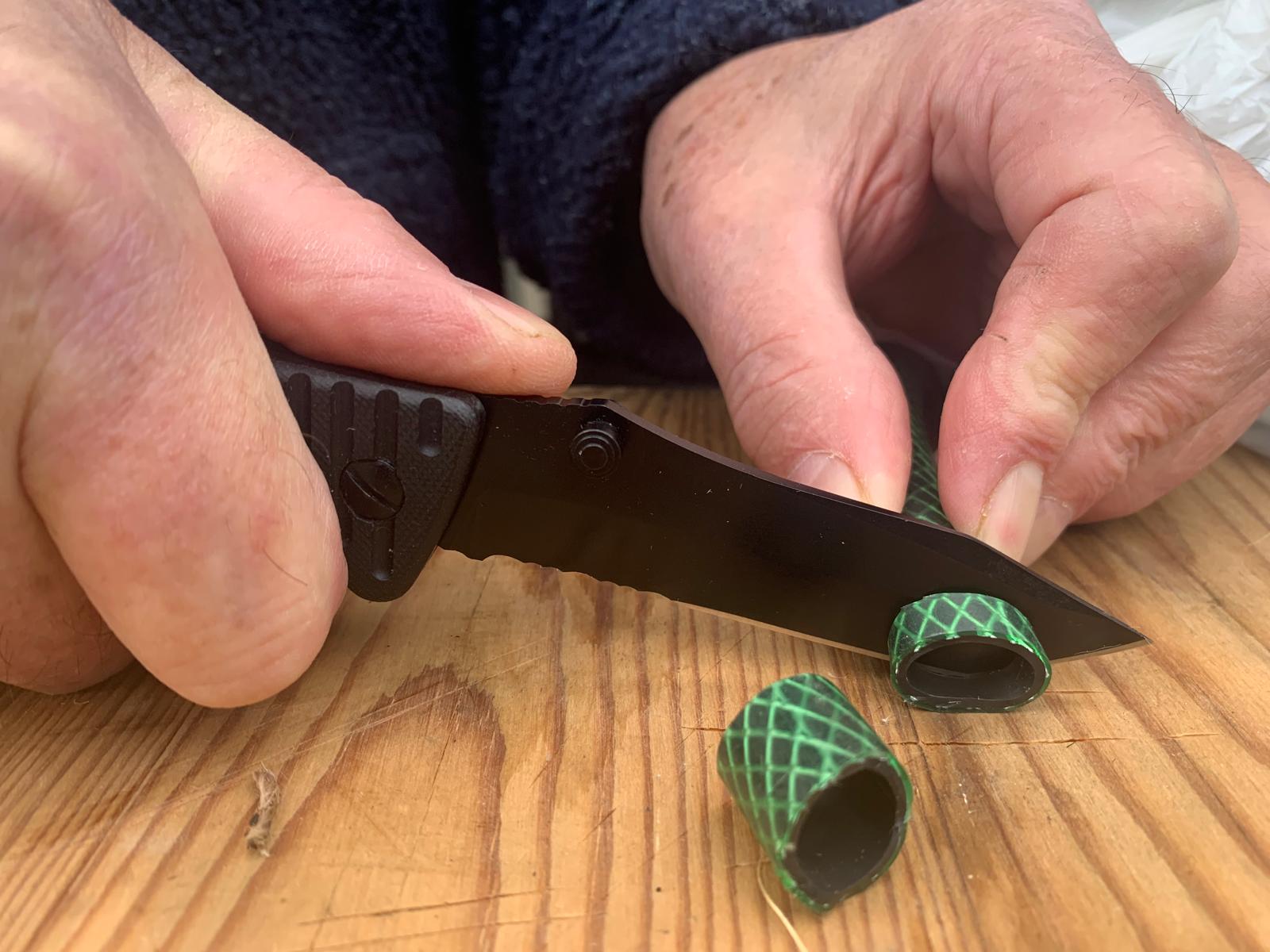 REINIGING & ONDERHOUDSTIPS: Ik gebruik bij het onderhoud voor het verwijderen van vuil een oude tandenborstel, pijpenragers en ook een busje gecomprimeerde lucht voor het verder schoon & droogspuiten. Voor het in-oliën een zacht doekje en een goede minerale olie. Daarna strop en/of scherp ik indien nodig, de snede. Vergeet niet dat je bij werkzaamheden met een bot lemmet sneller uitschiet en jezelf mogelijk verwondt. En als je toch uitschiet is een “mooie rechte” snede door een arts veel beter te hechten ook.