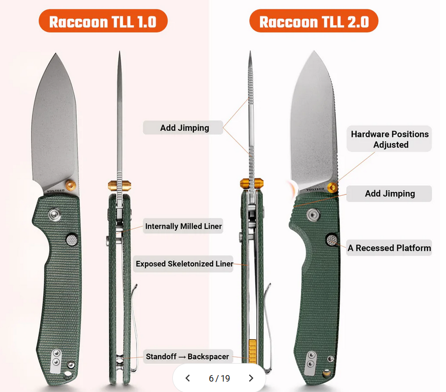 Met dank aan de heer J. Brester van het bekende Knives & Tools Online uit Apeldoorn (de BeNeLux.- verdeler van VOSTEED), door het direct beschikbaar stellen van het spiksplinternieuwe VOSTEED-testexemplaar. Zonder dat was deze nieuwe VOSTEED RACCOON 2.0 - review niet tot stand gekomen. En let op messenvrienden, er zijn ook weer nieuwe VOSTEED-modellen in aantocht. Bekijk deze op hun omvangrijke website op: https://www.knivesandtools.nl/search?q=vosteed.